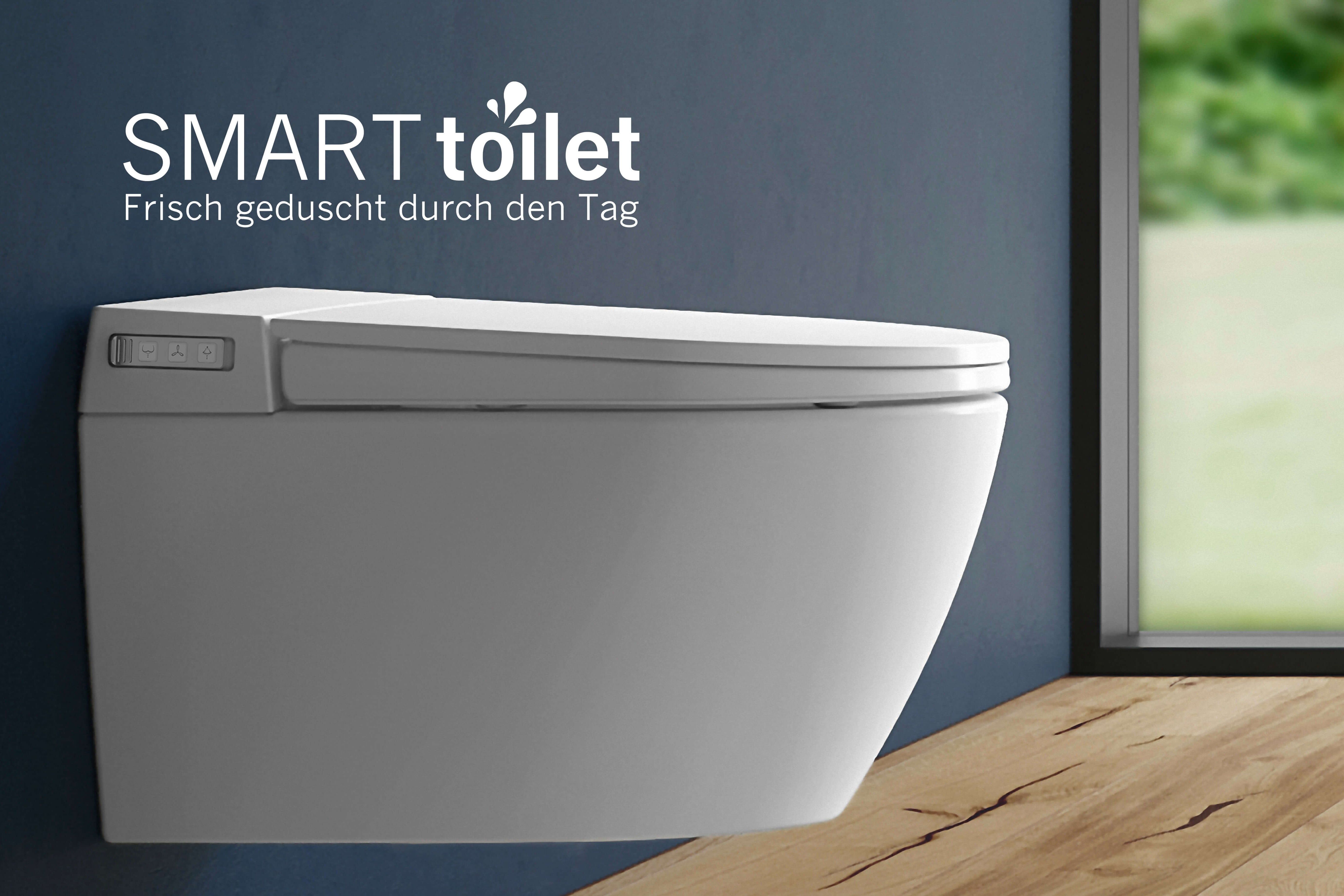 Wir präsentieren ein neuartiges Dusch-WC mit intelligenten Funktionen. Die SMART toilet verbindet funktionale Technologie mit der natürlichen Frische und Reinigungskraft des Wassers. Mit zahlreichen durchdachten, komfortablen Programmen zur Intimhygiene ist für ein anhaltendes Top-Pflegegefühl, körperliches Wohlbefinden und eine gute Ökobilanz durch die Vermeidung von Papier und Feuchttüchern mit diesem smarten WC gesorgt. SMART toilet ist mehr als Bidet und bietet ein ganzes Wellness-Programm, so dass man sich den ganzen Tag wie frisch geduscht fühlt.