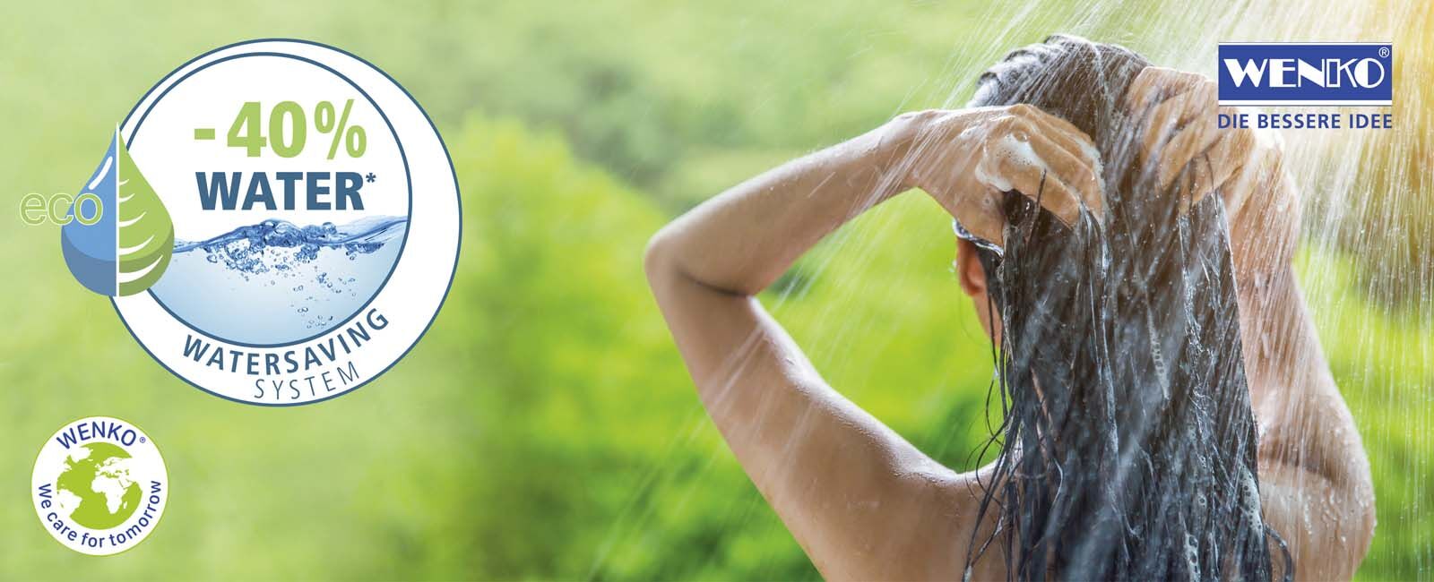Der Wechsel von herkömmlichen Brausen zu Energiespar-Duschköpfen macht sich in der Tat bemerkbar – sowohl in der Energiebilanz als auch im eigenen Portemonnaie. Bei den Duschköpfen mit sogenannter Watersaving-Technologie von WENKO fließen weniger als 8 Liter Warmwasser pro Minute durch die Brause, also pro Duschvorgang nur 48 statt 80 Liter. Das sind 40 Prozent weniger bei gewohnt hohem Komfort, weil der Wasserdruck dank des innovativen Spareinsatzes konstant bleibt. Mit solch einem solchen Duschkopf werden