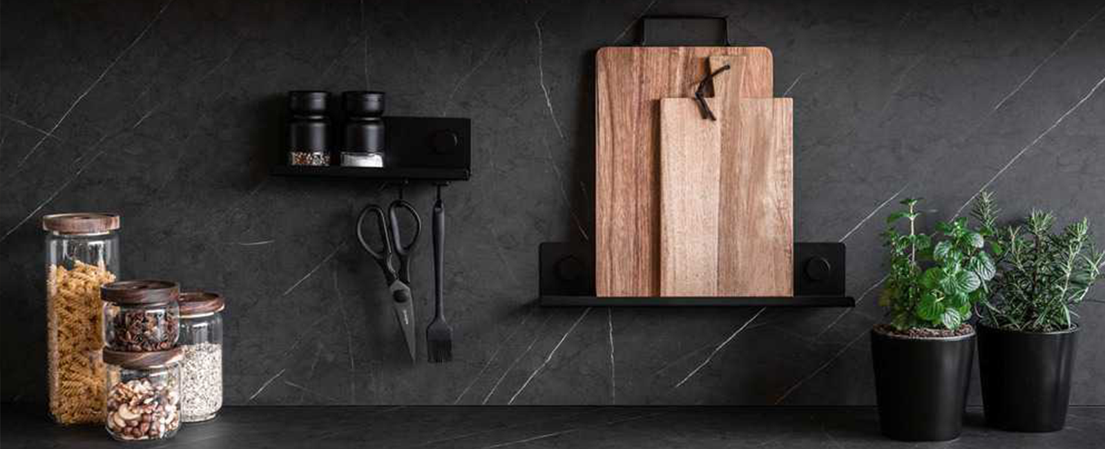 Crea un espacio elegante sin esfuerzo mezclando detalles negros con tonos de madera oscura en tu decoración.